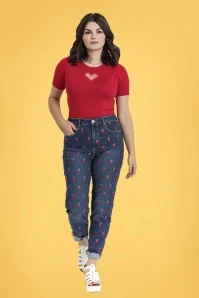 These 40s Hidden Away Trousers in Teal are inspired on the trousers that those progressive women in the 40s / 50s wore! The high waist forms a beautiful contrast with the wide leg and is very flattering, also with fuller hips/bottom. The bow and button detail at the back finish it off perfectly. Made from a supple, teal green fabric with a light stretch and finished off with a chic fold over detail at the legs. Pair with a white blouse for a classy look or with a striking top for a sassy look! Pair with a blouse and pumps for a day at the office in retro style!