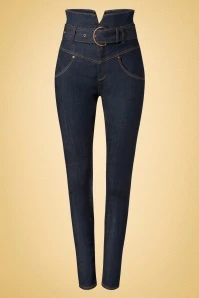 Our very own Rock-a-Booty brand is known for her unique blue dreams… and these 50s Babe Skinny Jeans in Denim Blue are a denim dream come true! Babe is styled with a feminine high waist, which stands out even more thanks to the V-notch and the denim belt with a striking copper-toned buckle, front pockets, back pockets and fitted skinny legs that make your legs look endless. The entire Rock-a-Booty collection is high quality and that includes this denim beauty made of a stunning sturdy, denim-blue cotton blend (barely stretches) for a curve-hugging fit while the copper-toned buttons and dark-yellow stitching add an authentic touch. This Babe has got your back… literally! Because no one rocks your booty like this skinny does 😉