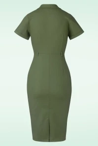 The combination possibilities are endless with this Caterina Pencil Dress in Olive Green! A stunning shirt dress that isn’t only suited for a retro evening look,