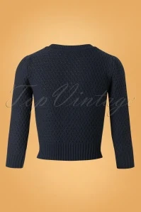 The combination possibilities are endless with this 50s Jennie Cardigan in Navy! Cardigans are often undervalued garments but let’s change that. You can wear them open or closed and make it possible to enjoy your summery clothes on cold days as well. They do deserve some credit for that, don’t they?! This versatile cardi features a classic cut with a round neckline, 3/4 sleeves and stretchy rib board for a beautiful fit. Made from a thicker yet lovely supple and stretchy, fine knitted navy blue cotton featuring a subtle check pattern. Jennie simply deserves a spot in your wardrobe, doesn’t she?