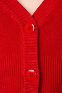The 50s Lets Go Dancing Cardigan is an all-time classic! Classy in all its simplicity and therefore THE perfect match with all your vintage items! This short cardi features an elegant V-neckline, long sleeves and shiny buttons. Made from a fine knitted, lipstick red viscose blend with a lovely stretch for a perfect fit. The combination possibilities are endless!