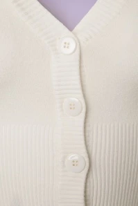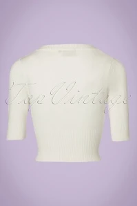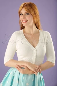 The 50s Overload Cardigan is an all-time classic! Classy in all its simplicity and therefore THE perfect match with all your vintage items! This short cardi features an elegant V-neckline, 1/2 sleeves and shiny buttons. Made from a fine knitted, ivory white viscose blend with a lovely stretch for a perfect fit. The combination possibilities are endless!