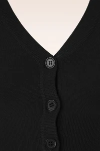 TheΒ 50s Shela Cropped Cardigan in Black is an all-time classic! Classy in all its simplicity and therefore THE perfect match with all your vintage items! This short cardi features an elegant V-neckline, 3/4 sleeves and shiny buttons. Made from a fine knitted, soft, black acrylic blend with a lovely stretch for a perfect fit. The combination possibilities are endless!