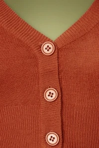 Theย 50s Shela Cropped Cardigan in Dusty Orange is an all-time classic! Classy in all its simplicity and therefore THE perfect match with all your vintage items! This short cardi features an elegant V-neckline, 3/4 sleeves and shiny buttons. Made from a fine knitted, soft, brick-orange acrylic blend with a lovely stretch for a perfect fit. The combination possibilities are endless!