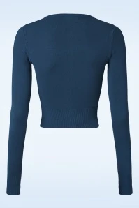 Theย 50s Paloma Cardigan in Blue is a stunning cardigan in vintage fifties style! One can never have to much cardies! This short cutie with a playful round neckline and long sleeves hits just below the waist and is made from a comfy soft, dark blue fabric with a good amount of stretch that will keep its nicely fitted shape. Must-have!