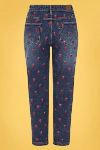 These 50s Strawberry Jeans in Denim Blue are sweeter than a strawberry! The feminine high waist, contrast stitching and 7/8 legs with turn-up cuffs make her the perfect match to both killer heels and sneakers. Made of a firm, denim-blue cotton blend with a light stretch that is super comfy. Can you resist this summery beauty? 😉