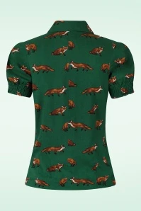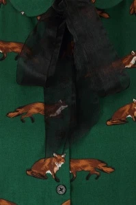 Looking foxy has never been easier, thanks to this 50s Vixey Blouse in Dark Green! If her cute short puff sleeves and her playful chiffon bow haven’t won you over yet, the adorable foxes will convince you to add her to your shopping bag! Made of a supple, viscose (doesn’t stretch!) in dark green and finished off with small black buttons at the front. Vixey, get in my shopping bag!