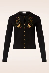 Comfort and style go hand in hand! This cardigan is made of a supple and stretchy, black viscose blend with pretty embroidered detailing.