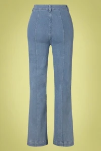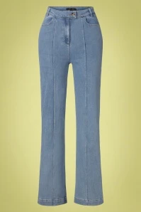 These 70s Ella Pintuck Strata Denim Pants in Heaven Blue take you back to the fabulous seventies! Jeans have been a wardrobe staple for many years, but it was in the late 1960s that jeans’ legs kept getting wider. The timeless denim fabric really catches your eye, while the decorative seams, contrast stitching, pockets and wider, slightly flared legs add the perfect finishing touches. Made of a firm, yet supple organic cotton blend in a light denim-blue hue that incorporates just a hint of stretch for a comfy fit. Denim is a love that never fades!