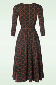 Autumn can often be chilly and cold, but this pretty dress will warm the cockles of your heart! Made of a supple and stretchy, dark-green EcoVero viscose blend that is a joy to wear and flaunts a brownish-orange floral design.