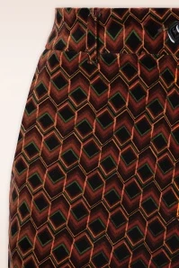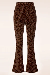 ”All any girl needs, at any time in history, is velvet!” These flared trousers are made of a firm, yet soft, velvety cotton blend flaunting a gorgeous seventies-inspired print.