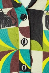 black cat goes with everything! This dress features a V-neckline with a lapel