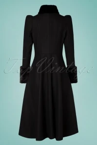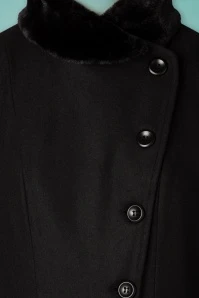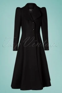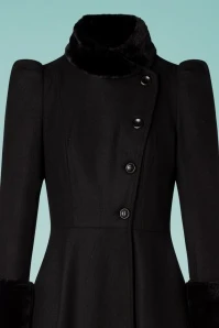 Stand aside, this 40s Violet Fur Trim Dress Coat in Black is about to make an entrance like you’ve never seen before! This coat is the statement piece that demands all eyes on her. She features a stylish high collar, long puffed sleeves, side pockets and detachable first class, soft faux fur in black. From the waist down she runs into a long flowy semi-swing skirt so you can wear all of your favourite dresses without getting them dirty 😉 Made of a sturdy black fabric that will keep you nice and warm and is fully lined in black. Blending into the crowd? No way! Make a statement this season with this fabulous coat!