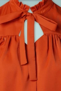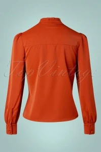 Classy and cute best describe this 50s Tonja Tie Neck Blouse in Rusty Orange! She features long puff sleeves with small buttoned cuffs, a row of buttons down the front and a little stand collar with ruffles and fixed tie straps. Made of a supple, rusty-orange fabric (doesn’t stretch) that is a joy to wear. It’s 10 out of 10 for Tonja.