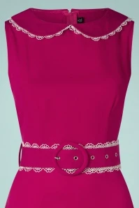 How sweet is this Betty Trim Collared Sixties Dress in Pink?! Flaunting a high, round neckline with a rounded collar, embroidered trims and a detachable waist belt. From the waist down she runs into a flattering A-line skirt with side pockets. Made of a supple, pink fabric (doesn’t stretch) that is a joy to wear. Say ‘hello’ to this cutie in pink!